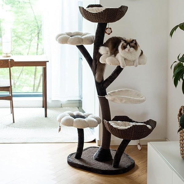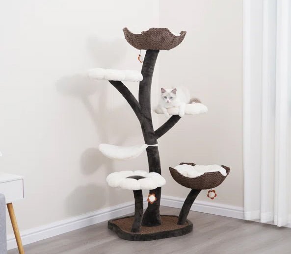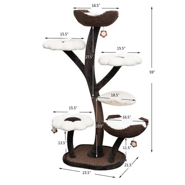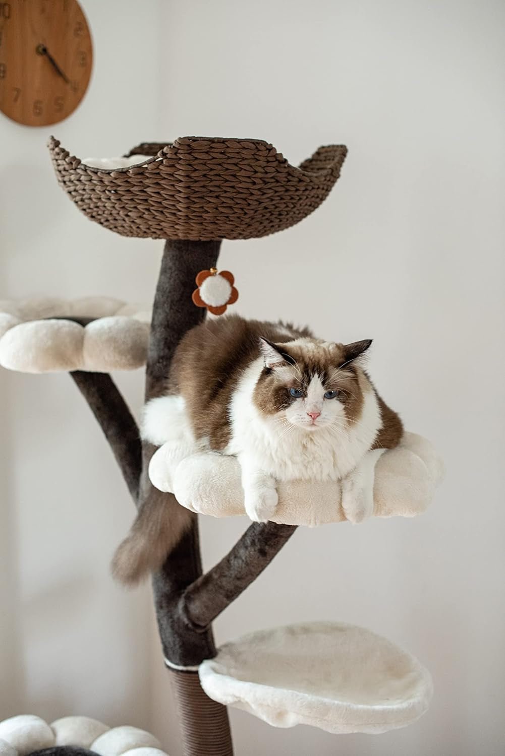 The Catry Blossom Large Cat Tree stands 59 inches tall, making it perfect for big cats who love to climb and lounge in style. Designed with a floral-inspired aesthetic, this multi-level cat tree blends seamlessly with modern home décor while providing a cozy retreat for your feline.